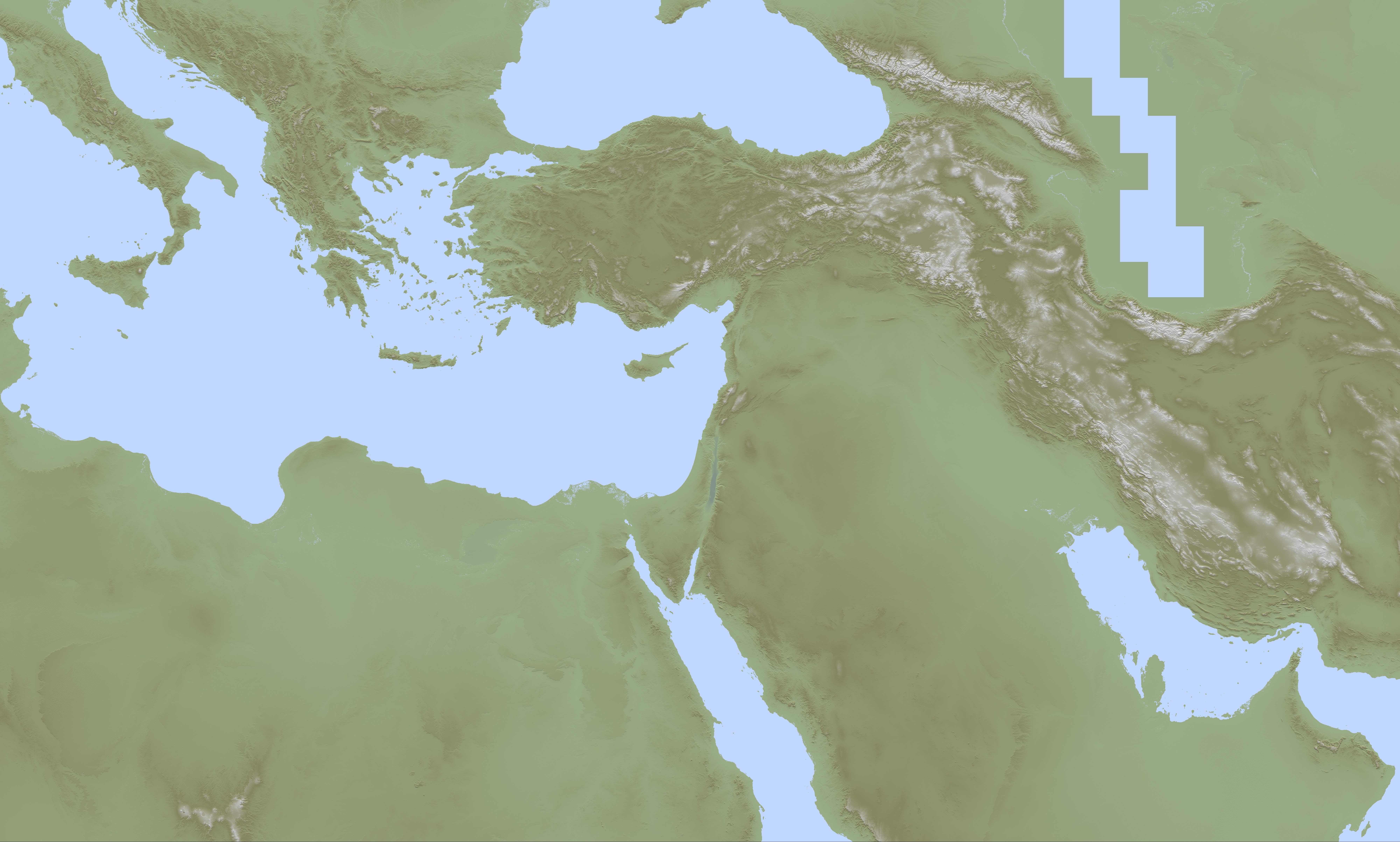 De SRTM-gegevens worden geleverd in een raster van punten op vaste afstand van elkaar, gerekend in graden (geografische breedte en lengte). Zou je dat direct zichtbaar maken, dan ontstaan op hogere breedten vervormingen in de zin dat landen er 'breder' uitzien dan ze zijn. Dat is visueel niet erg aantrekkelijk, in plaats daarvan zijn onderstaande kaarten in de Mercatorprojectie weergegeven. Dat is een hoekgetrouwe projectie, dat wil zeggen dat een (kleine) cirkel op de wereld in de kaart ook een cirkel is (en geen ellips of zoiets), maar het nadeel is dat landen op hogere breedten groter worden afgebeeld dan landen dichter bij de evenaar.