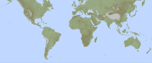 De SRTM-gegevens worden geleverd in een raster van punten op vaste afstand van elkaar, gerekend in graden (geografische breedte en lengte). Zou je dat direct zichtbaar maken, dan ontstaan op hogere breedten vervormingen in de zin dat landen er 'breder' uitzien dan ze zijn. Dat is visueel niet erg aantrekkelijk, in plaats daarvan zijn onderstaande kaarten in de Mercatorprojectie weergegeven. Dat is een hoekgetrouwe projectie, dat wil zeggen dat een (kleine) cirkel op de wereld in de kaart ook een cirkel is (en geen ellips of zoiets), maar het nadeel is dat landen op hogere breedten groter worden afgebeeld dan landen dichter bij de evenaar.
